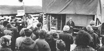 Clive addresses a crowd of farmers and MAF staff at a Lands & Survey Angus field-day in 1976.