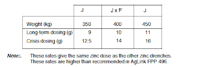 Note. These rates give the same zinc dose as the other zinc drenches.