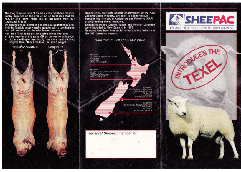 The Sheepac business ran from 21 January 1988 to 17 May 1995.  The marketing team initially produced a  brochure (see below) to help each shareholder  promote and market what sheep they had to sell – purebreds and crossbreds.  There was a brochure for each breed and a space to put the vendor’s contact details, so each shareholder had to organise their own marketing and promotion.