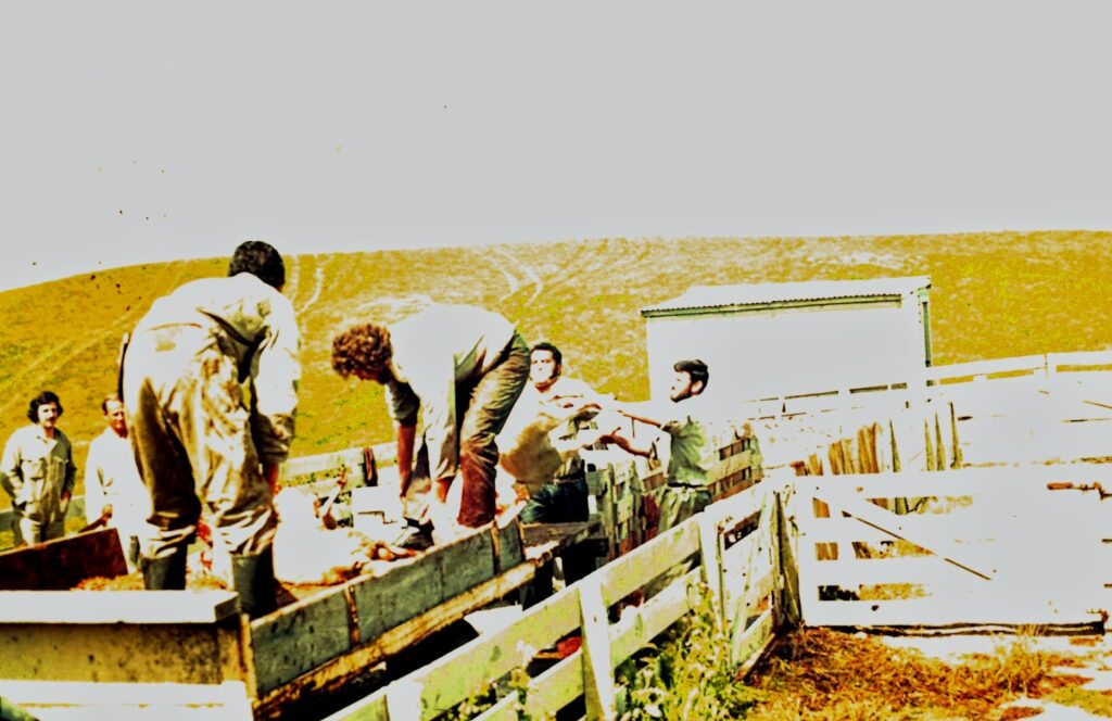 | MAF staff involved in sheep slaughter (John Dobbie’s memory) – Nick Dimmock, Garry Trow, Neville Ames, Don Cameron, Charles Grbic. Photo: Alan Julian |