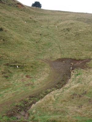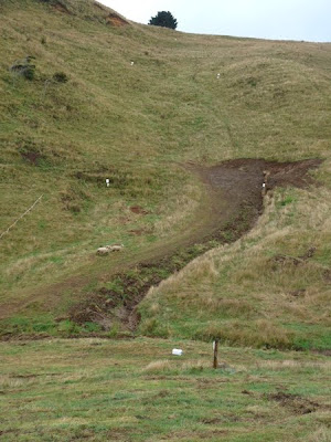 This is where the dog has to drive three sheep up a steep slope in as straight a line as possible. These pictures were taken at the Karioi Dog Trial grounds near Raglan in the North Island of New Zealand