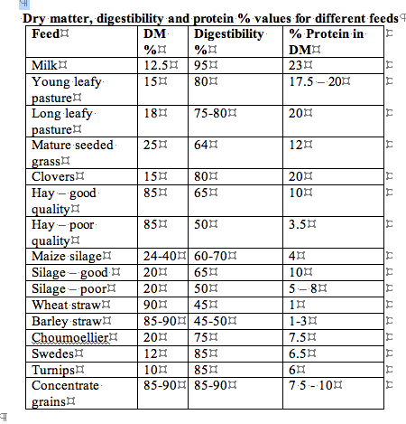 - Using energy is a big advance from just thinking about DM – you now can find out how much energy is in each Kg of the DM as shown in the table below. But be warned about the limitations of these general figures and get a proper analysis done on a representative sample of feed from a registered laboratory.