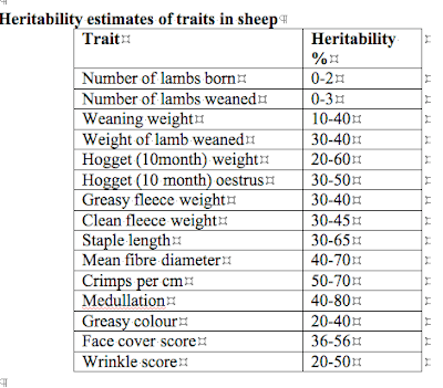 - Notice how any traits related to fertility or survival are low because the environment has such a large impact on them, and how wool and growth traits generally have high heritability.